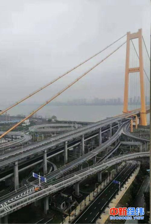 长江大桥上的外卖小哥